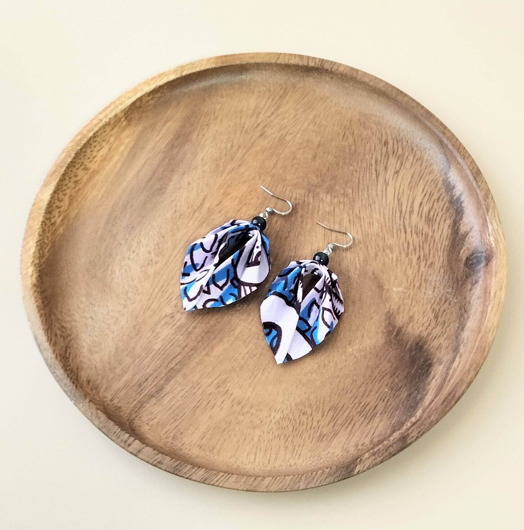 アフリカ布 ピアスorイヤリング purple&blue leaf