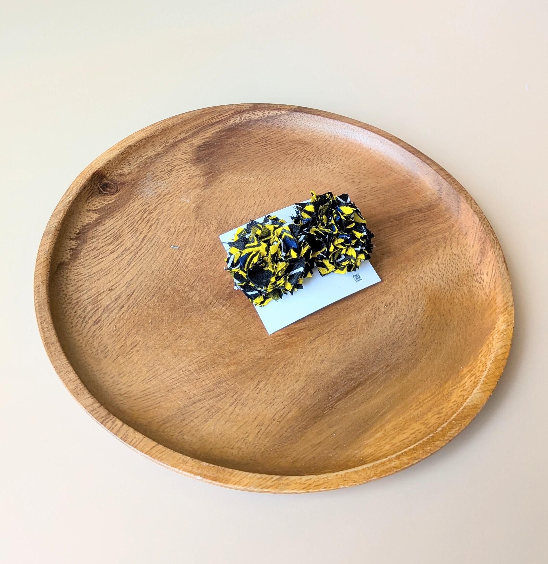 鮮やかで力強い色彩が目を惹く、アフリカ布を使用したふわもこイヤリング。