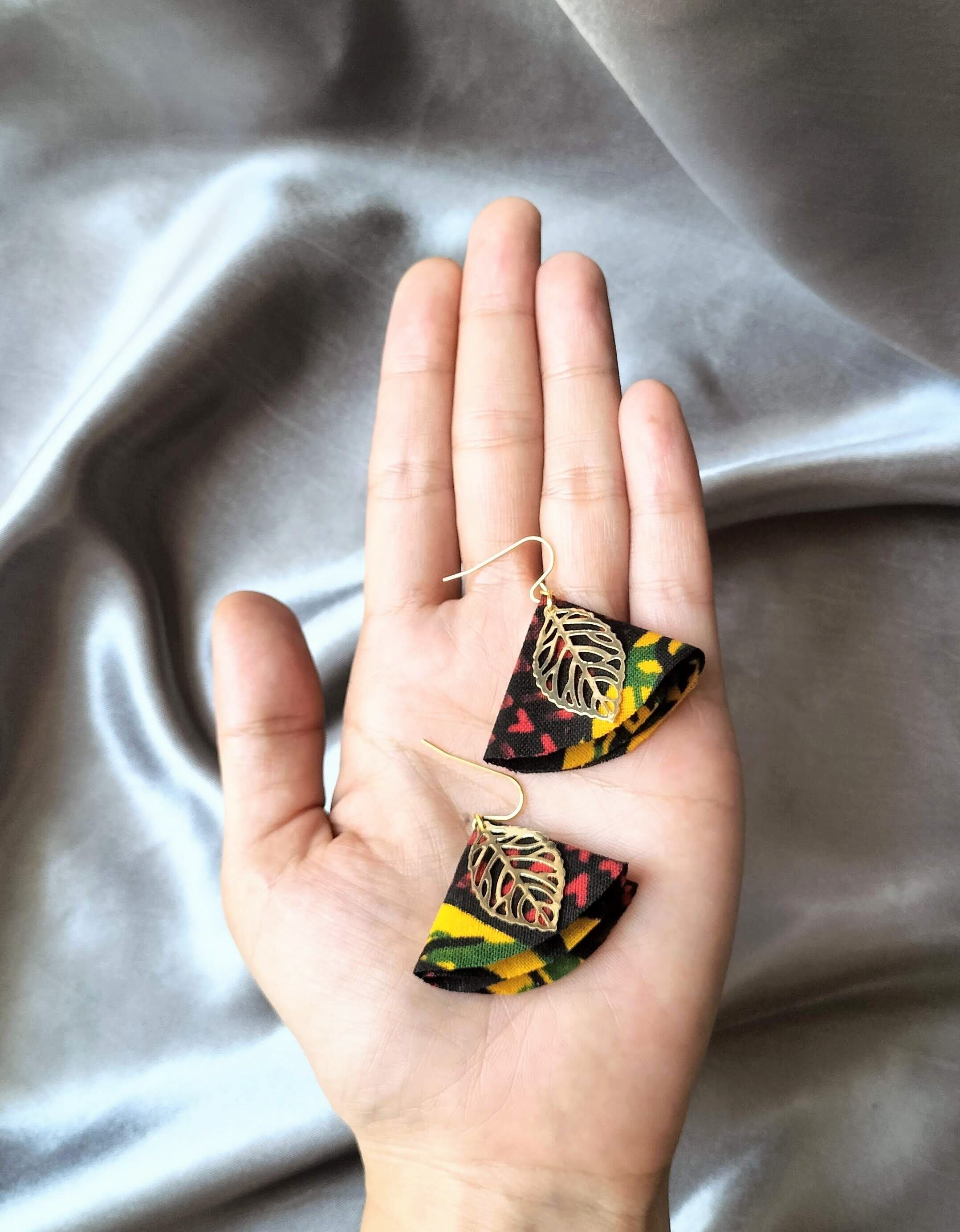 アフリカ布 ピアスorイヤリング 愛リーフを添えて
