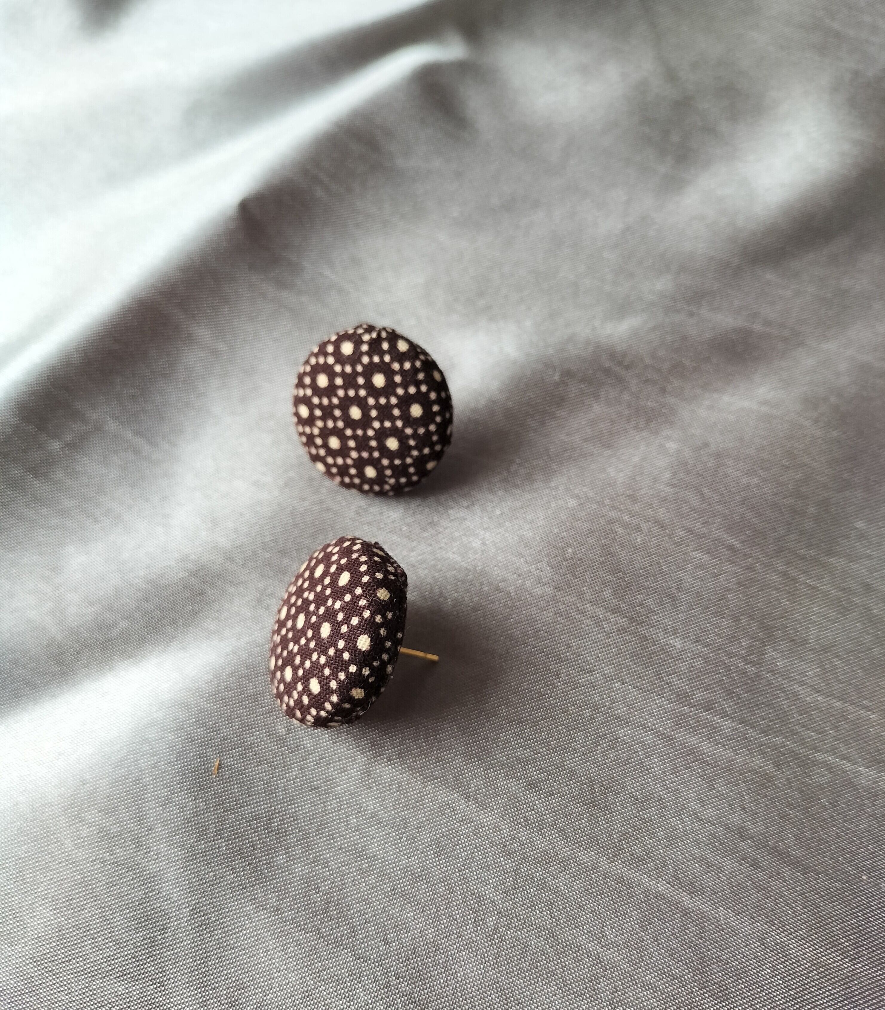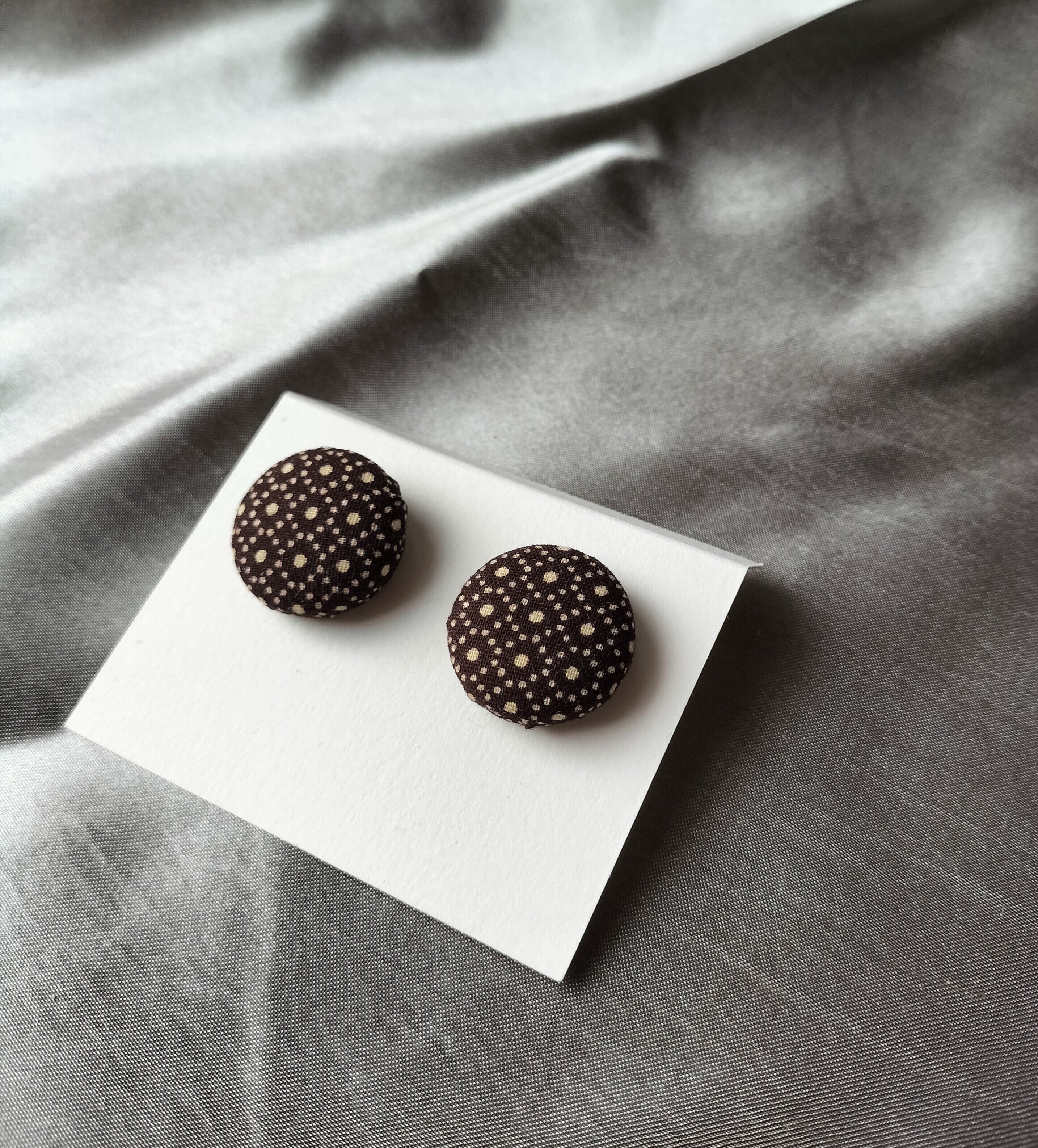 くるみボタンで作ったコーヒーの様な深みのあるブラウンのピアス*°
