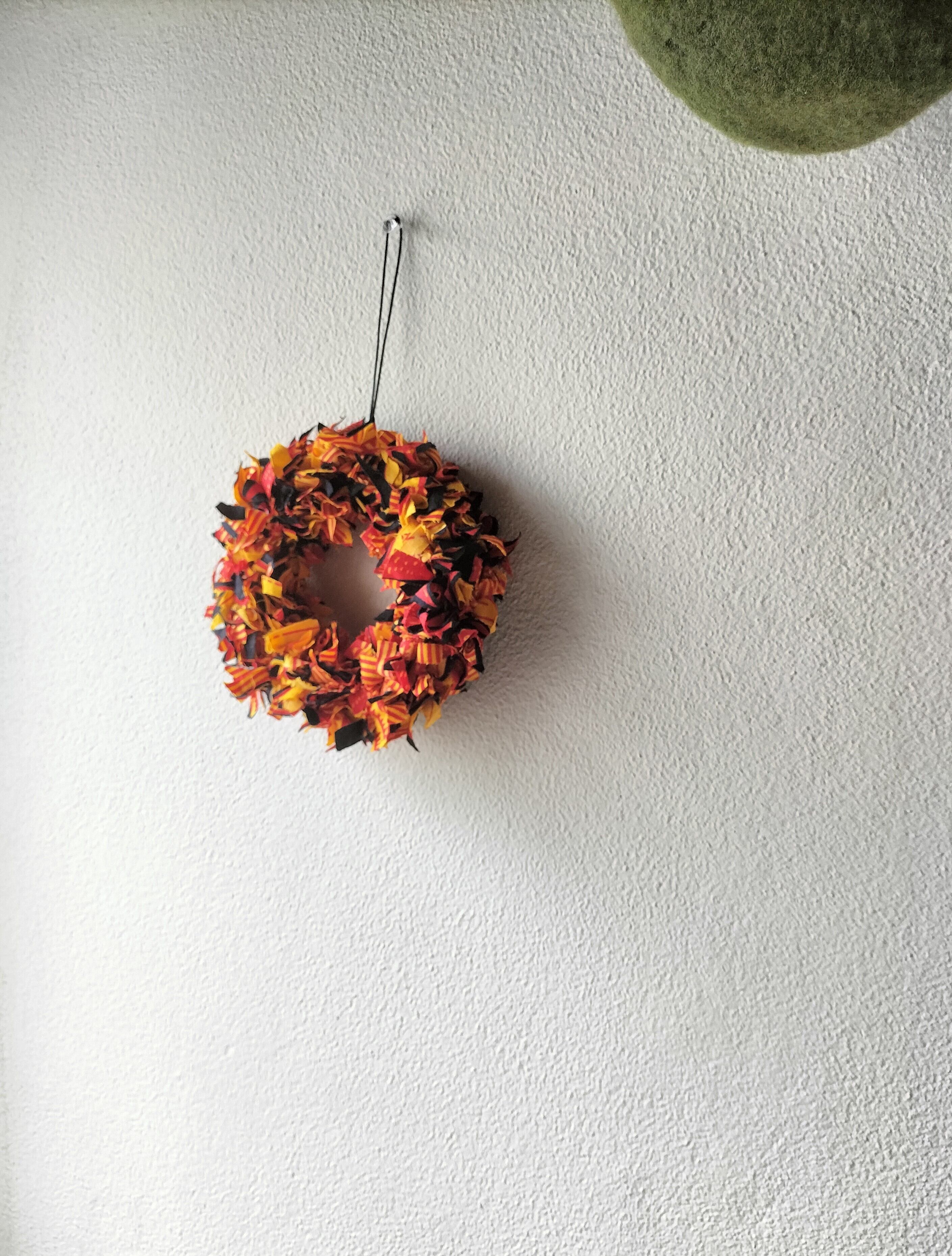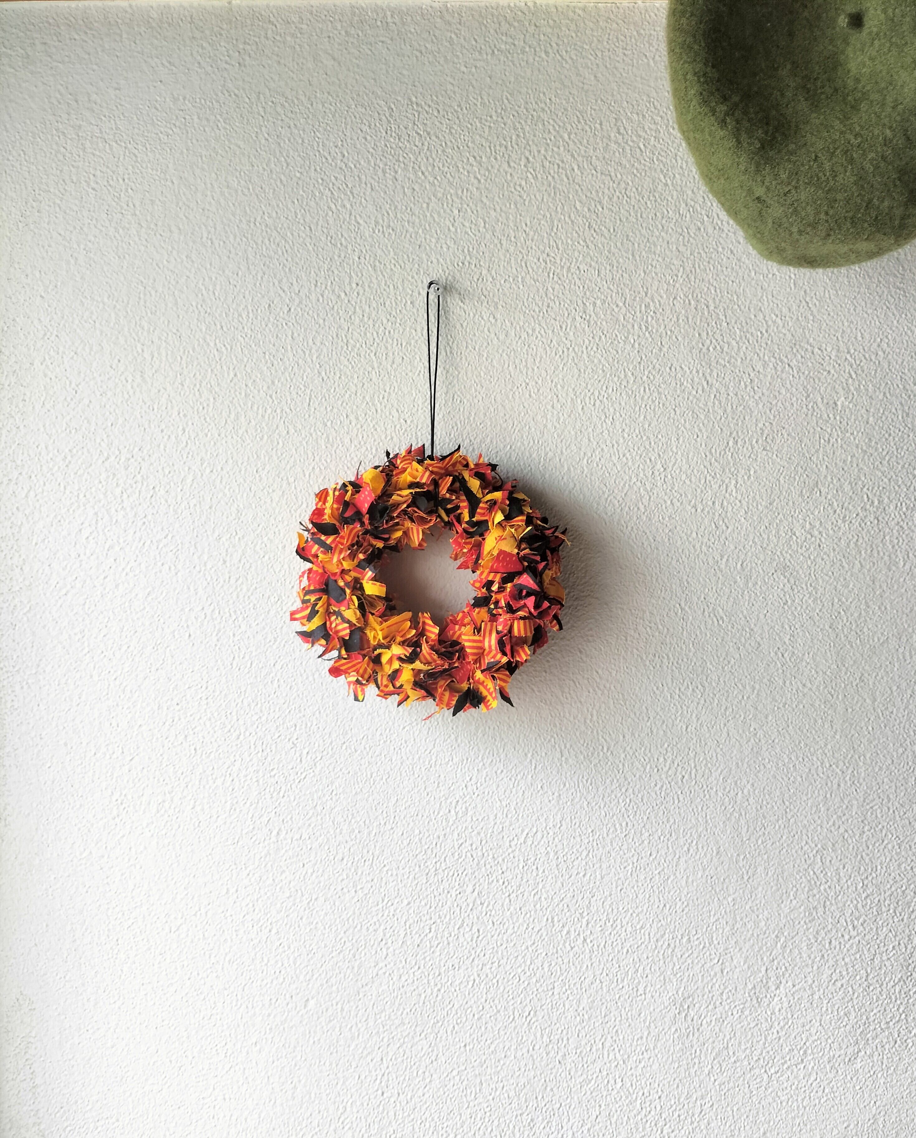ハギレの長さをご自身でカットして小さくすることも可能ですので、お部屋にあったリースを作ってみてもいいかも♪