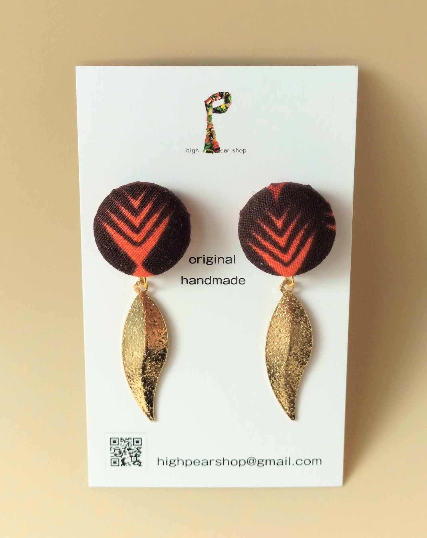 アフリカ布 ピアス 夕暮れゴールド