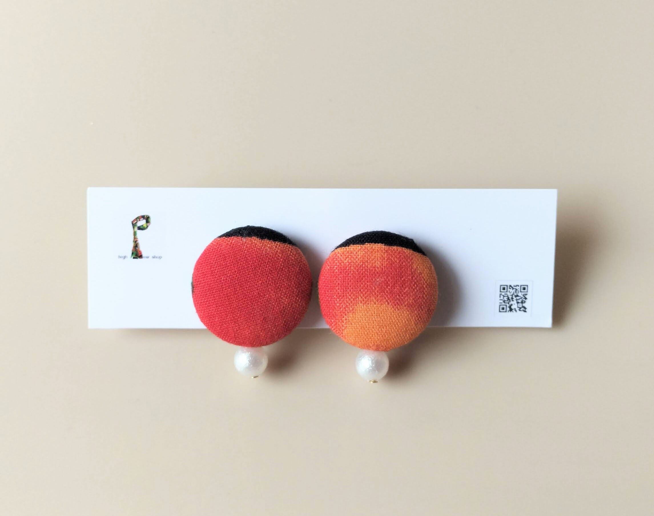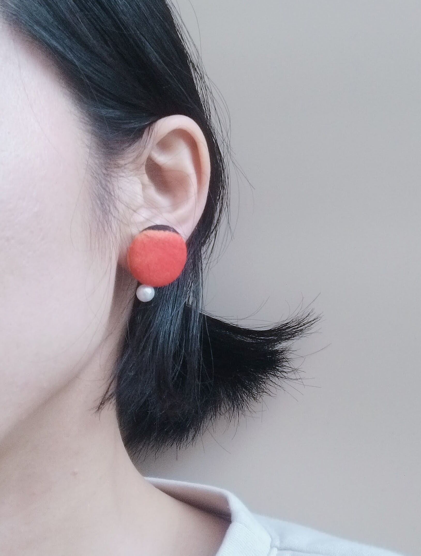 赤に近いオレンジでアシンメトリー感を出しながら、上に少しの黒をプラスして統一感もあるイヤリング.*・゚