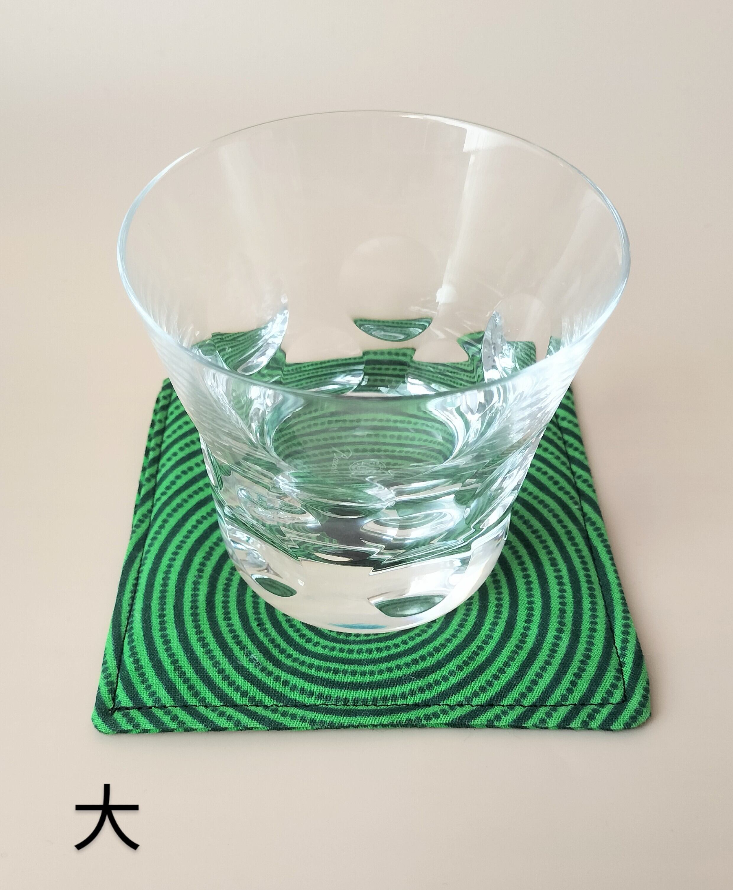 色鮮やかな緑と黄色のコースター。