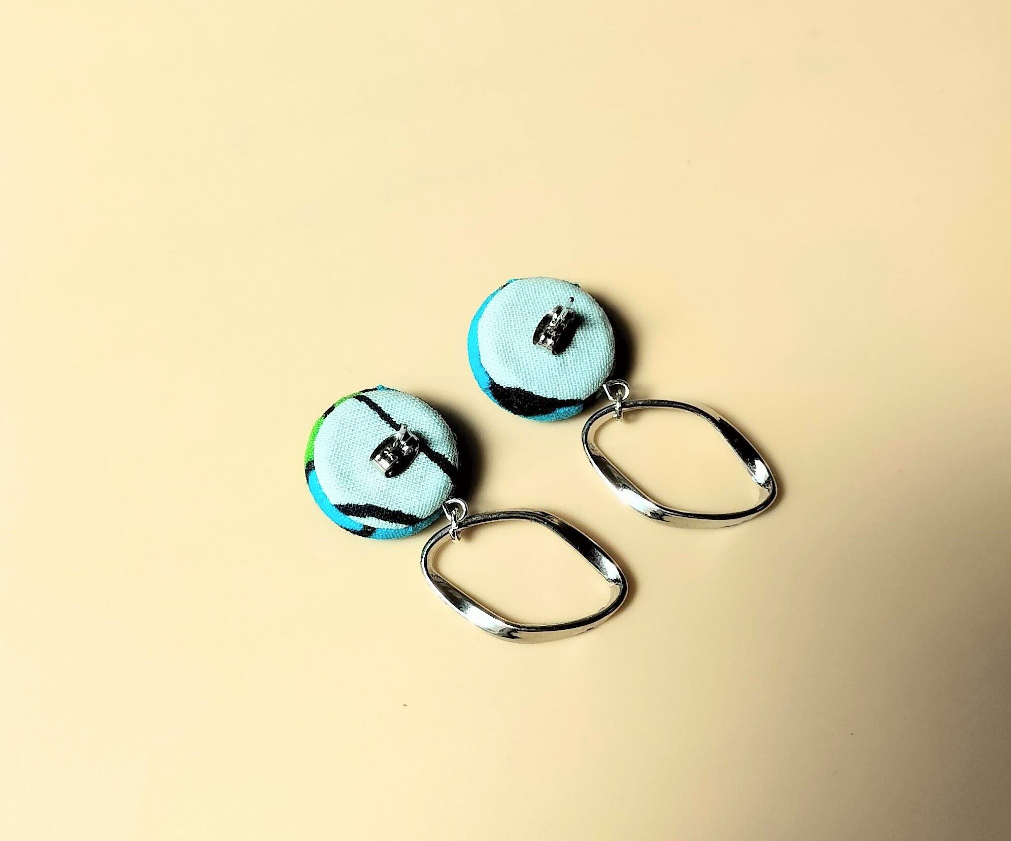 目が覚めるような青と緑のくるみボタンピアス.*・゚