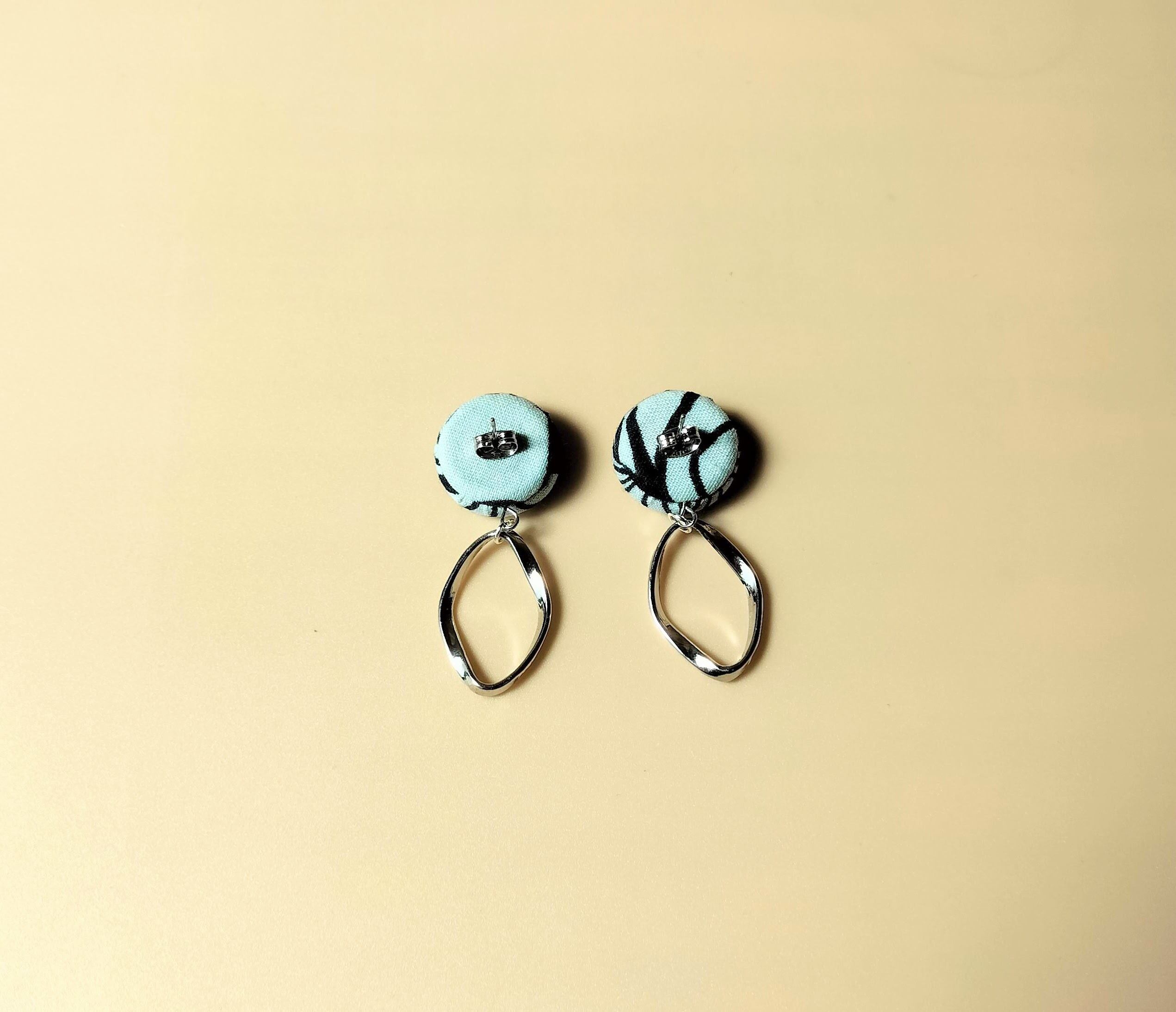 青みがかった白ベースに紺色ラインが涼し気なくるみボタンピアス.*・゚