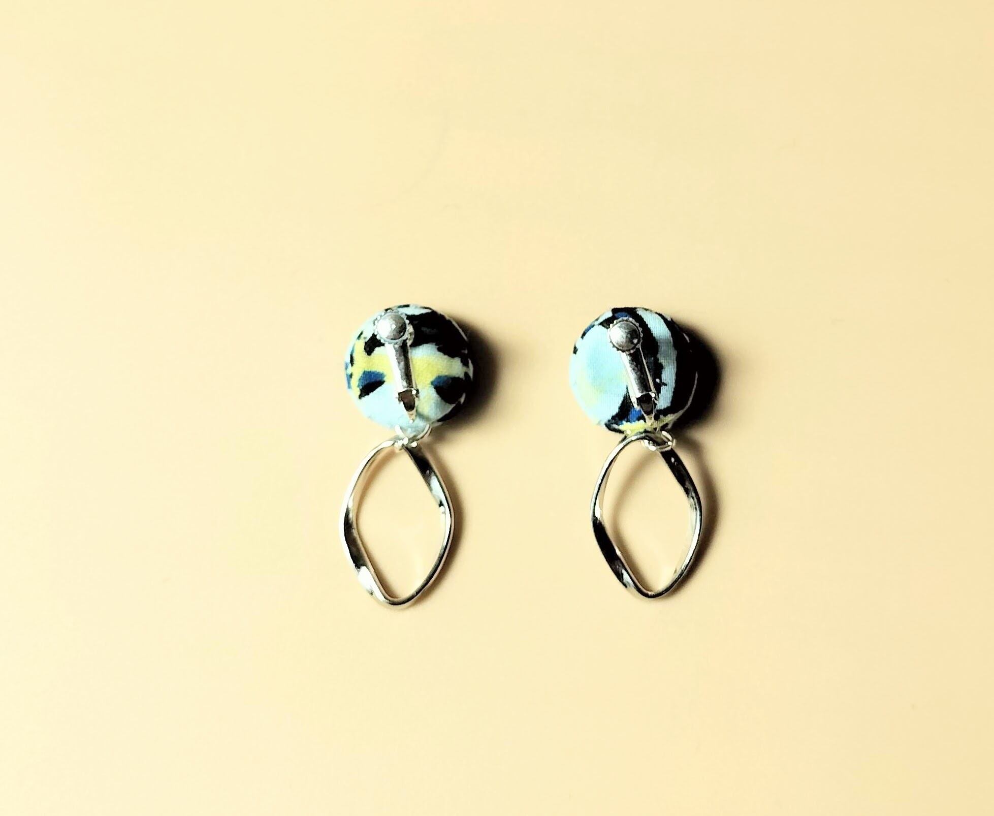 青みがかった白ベースに噴水のような青の柄、そして光のようにクリーム色がが所々にちりばめられていてこれからのシーズンにピッタリなイヤリング.*・゚
