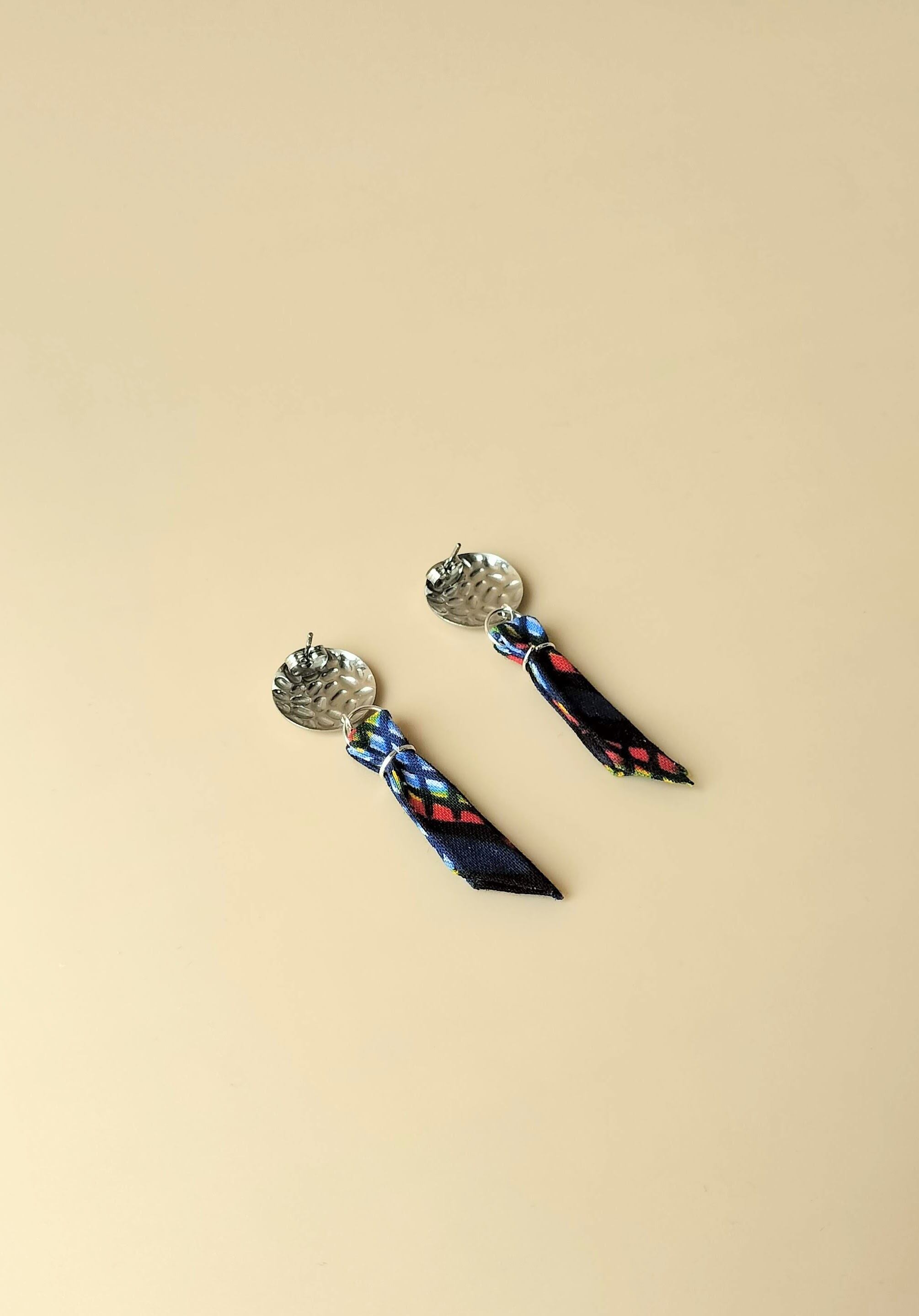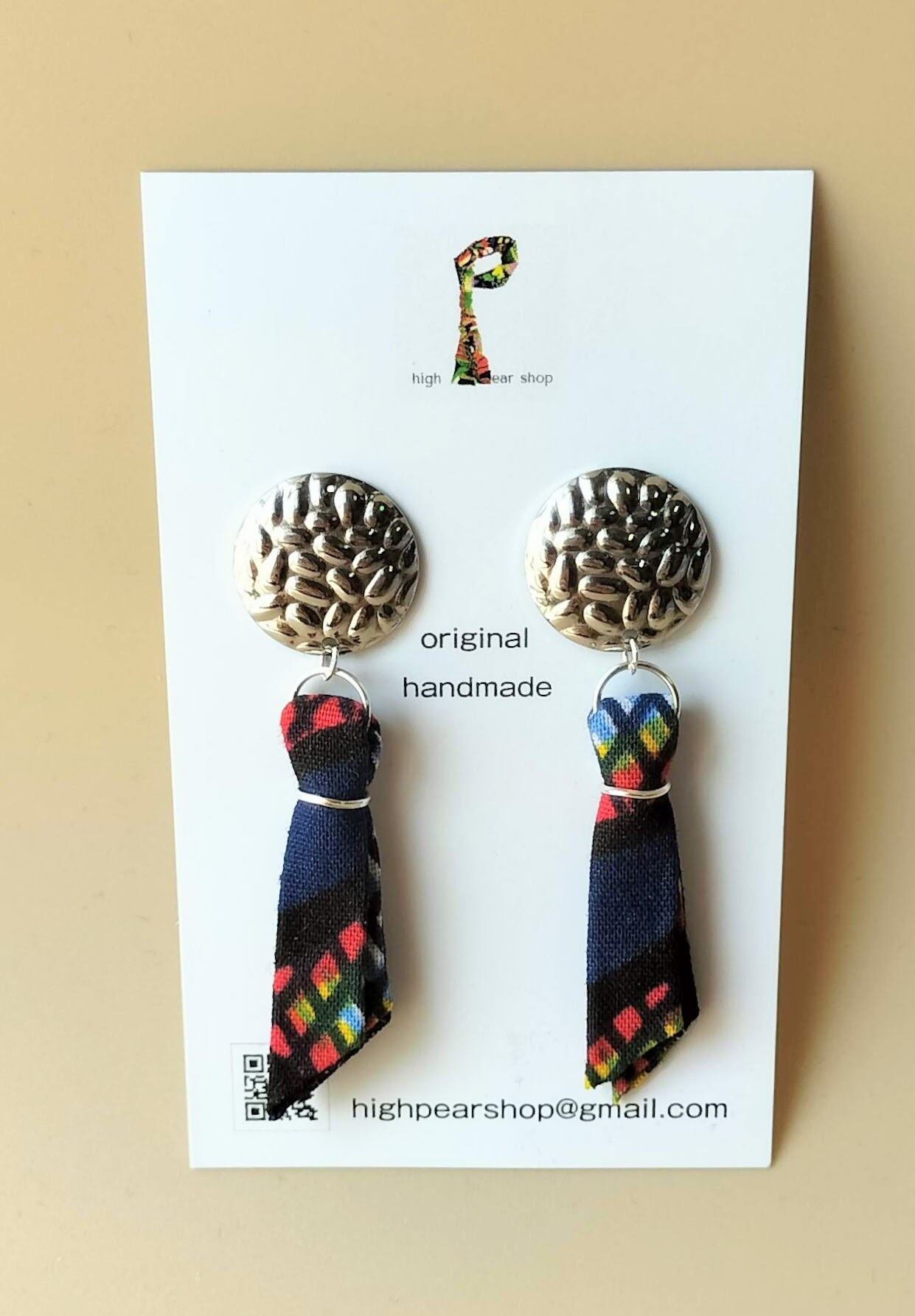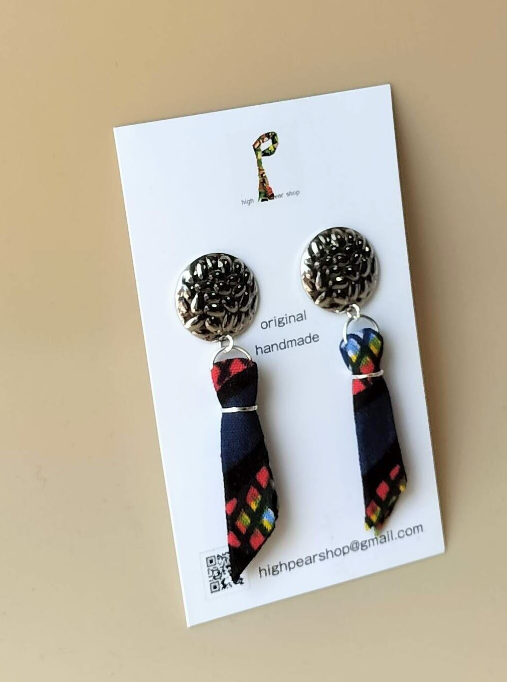 紺色にチェック柄がちらりと顔を出してるタッセルピアス。