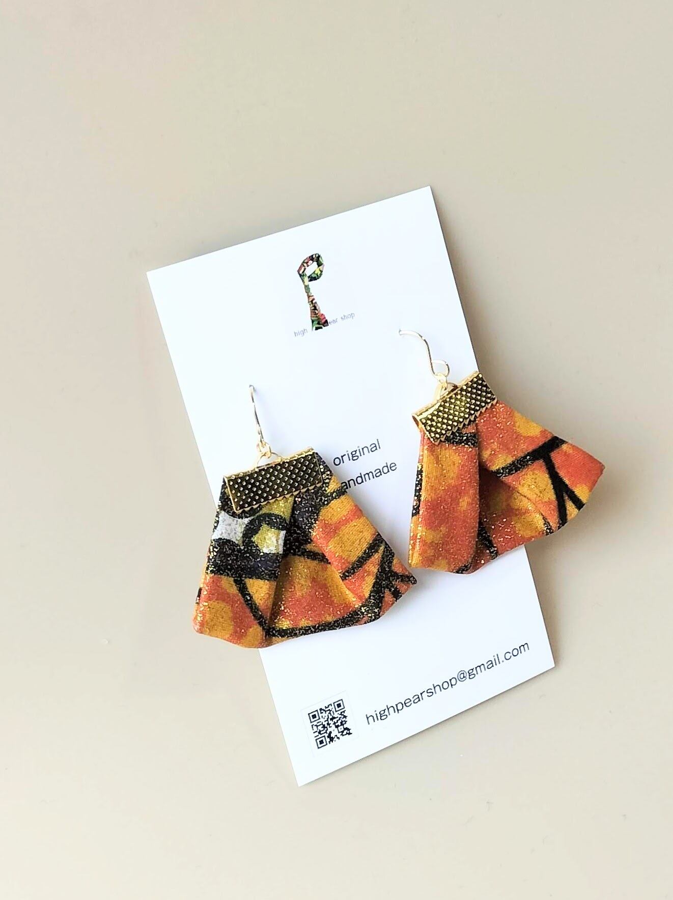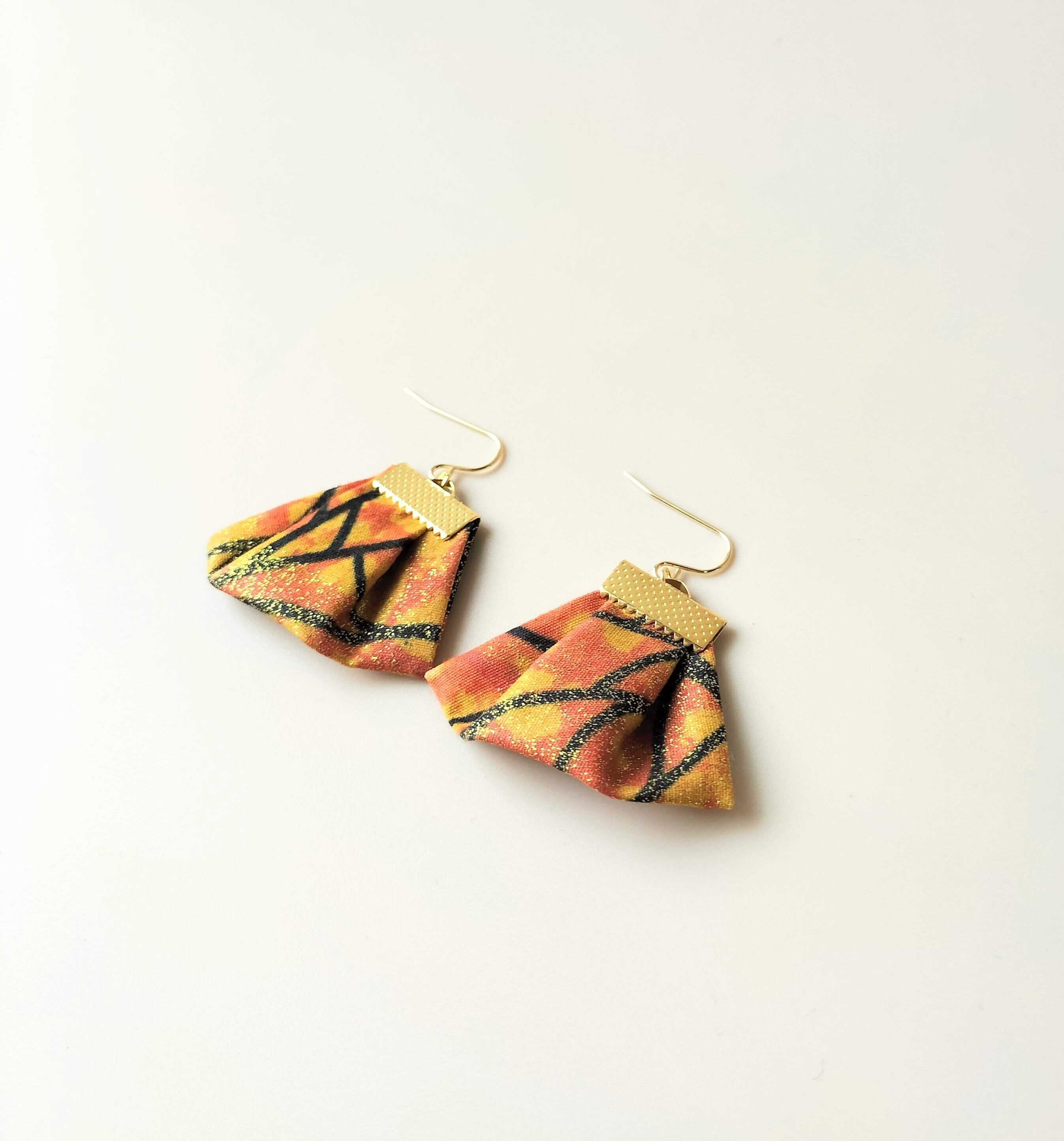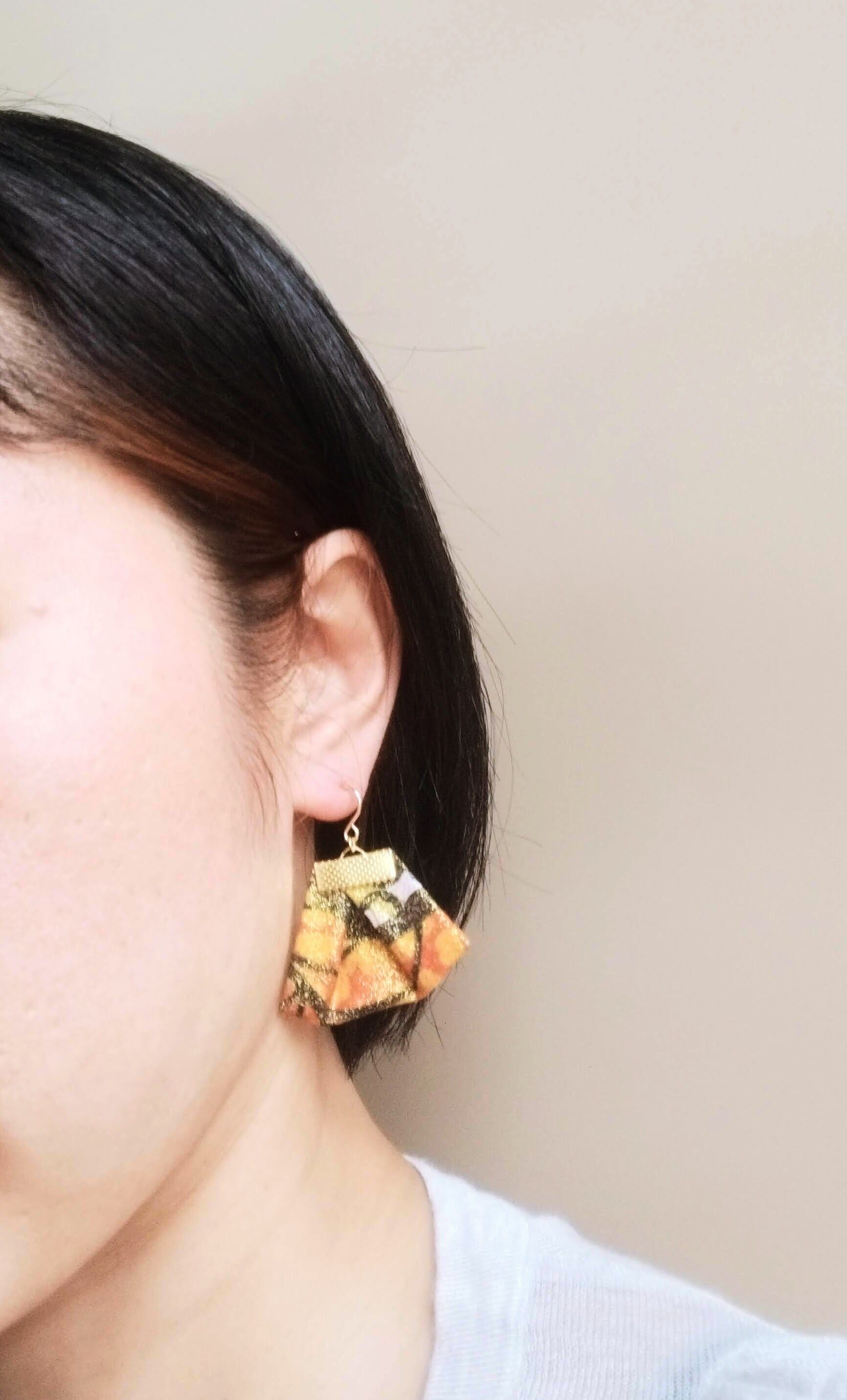 アフリカ布 ピアスorイヤリング oriori gold&brown