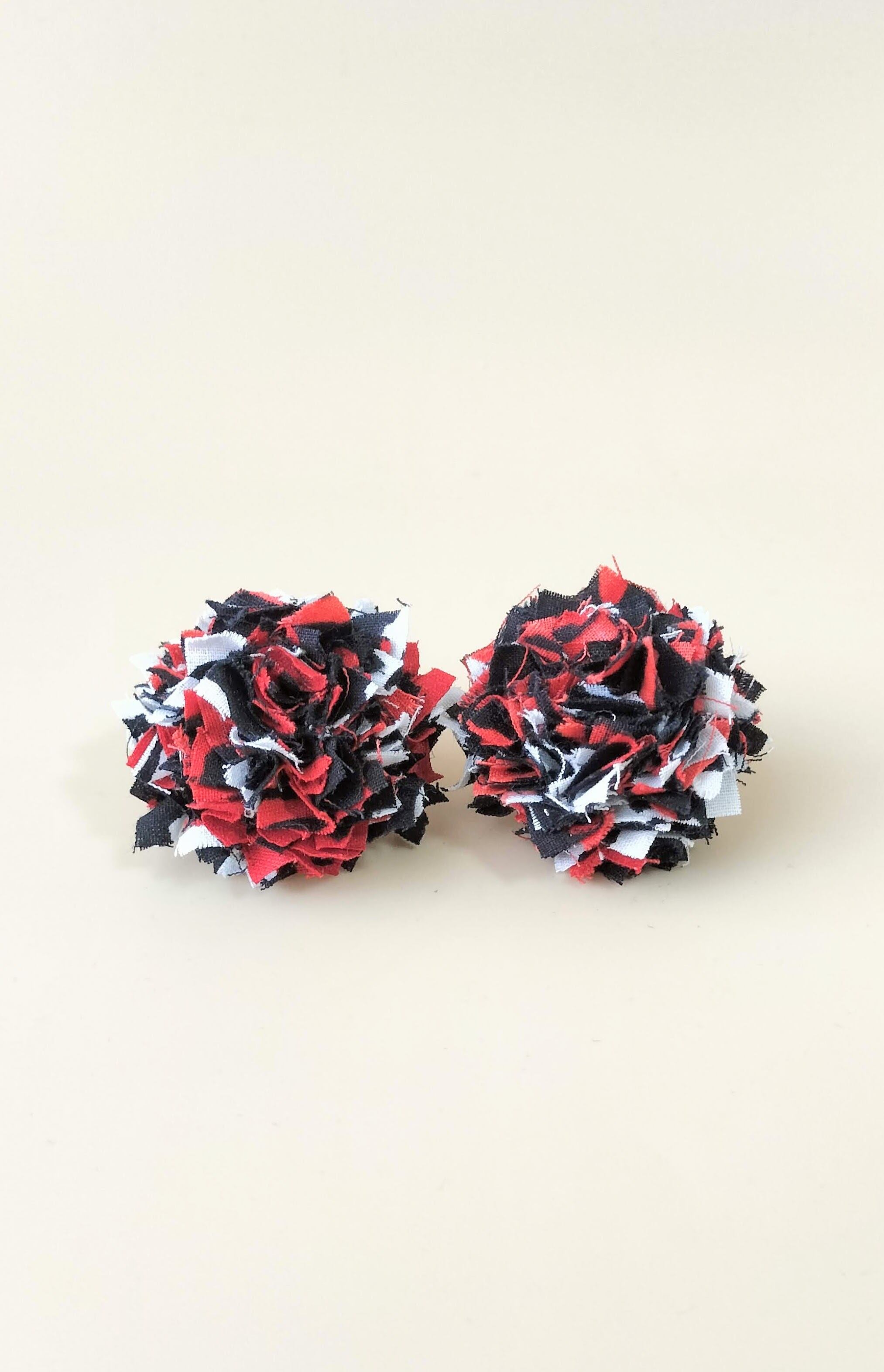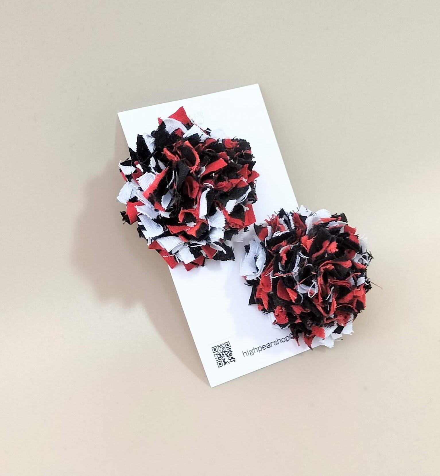 黒、白、赤がランダムに重なった、色鮮やかなフワフワピアス♪