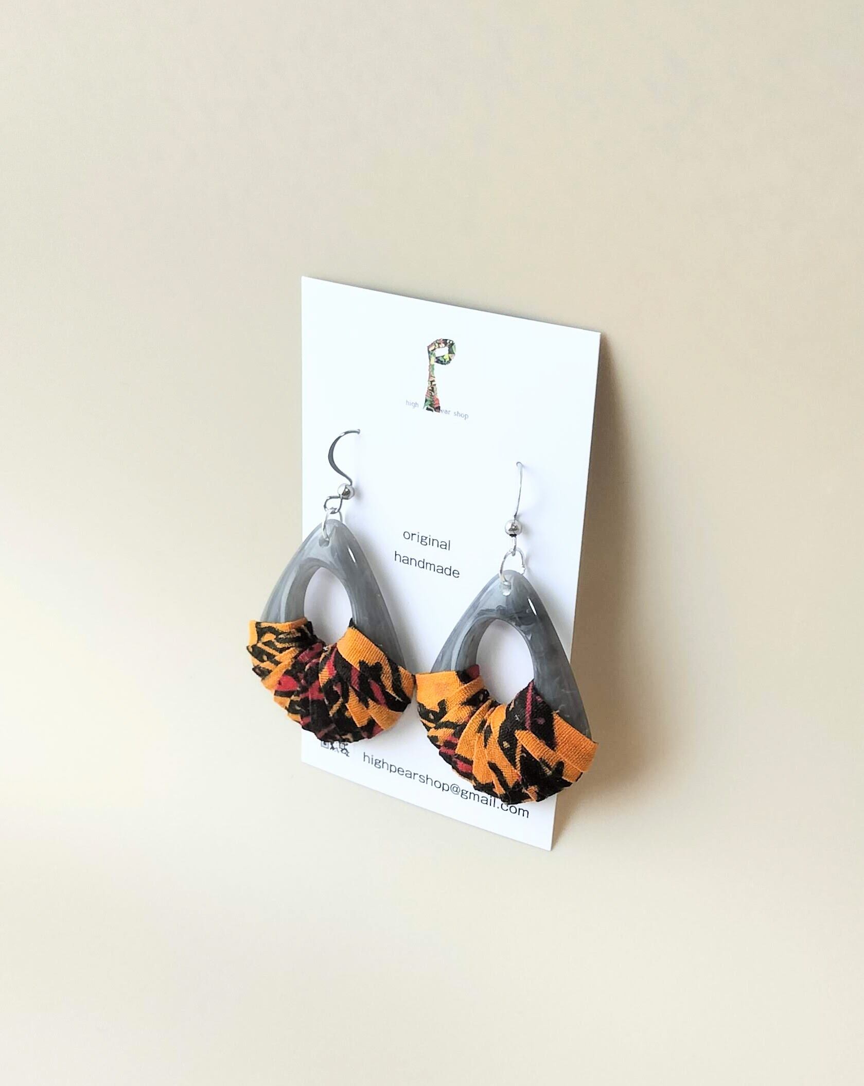 アフリカ布 ピアスorイヤリング clear gray×orange roll