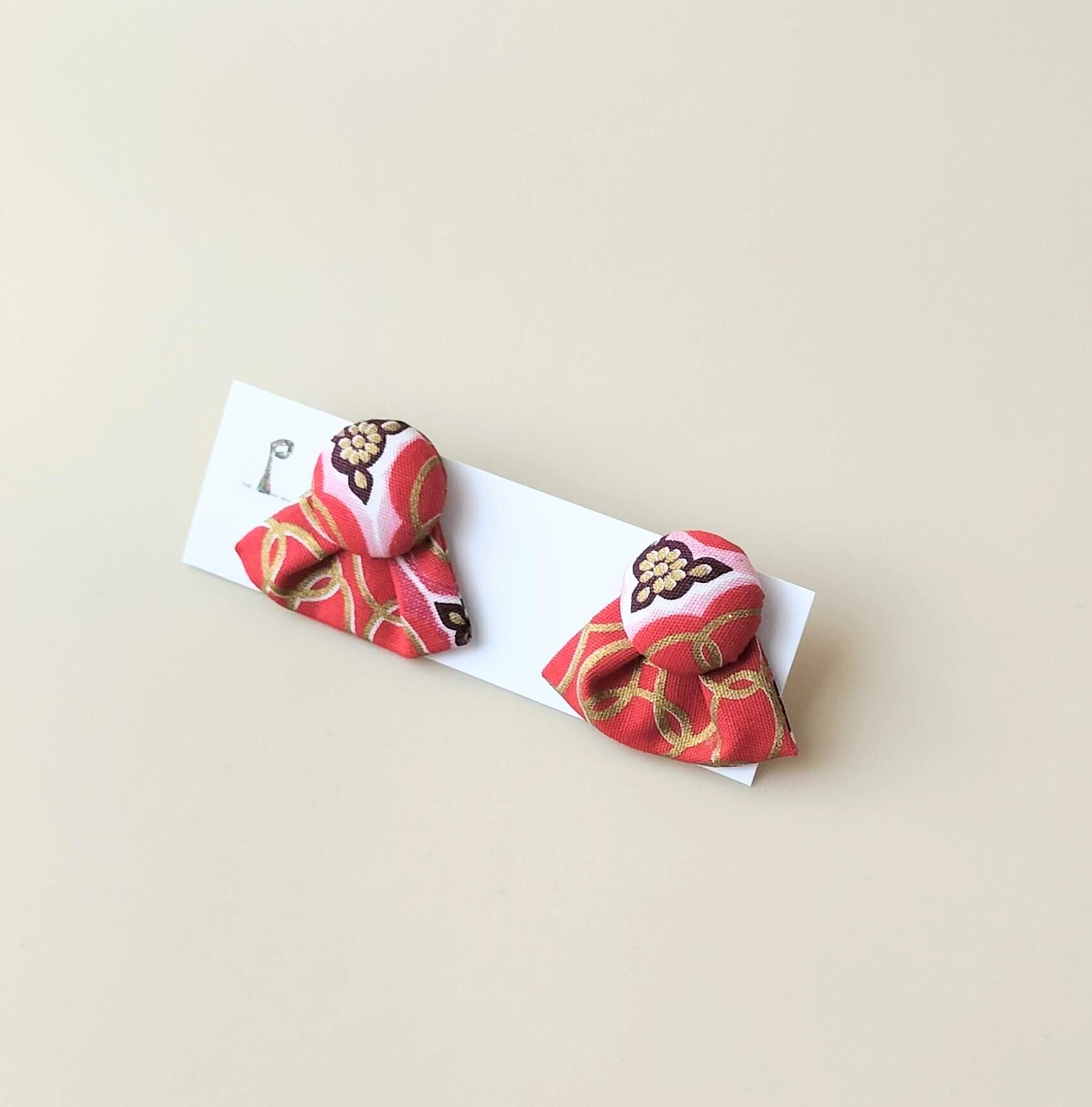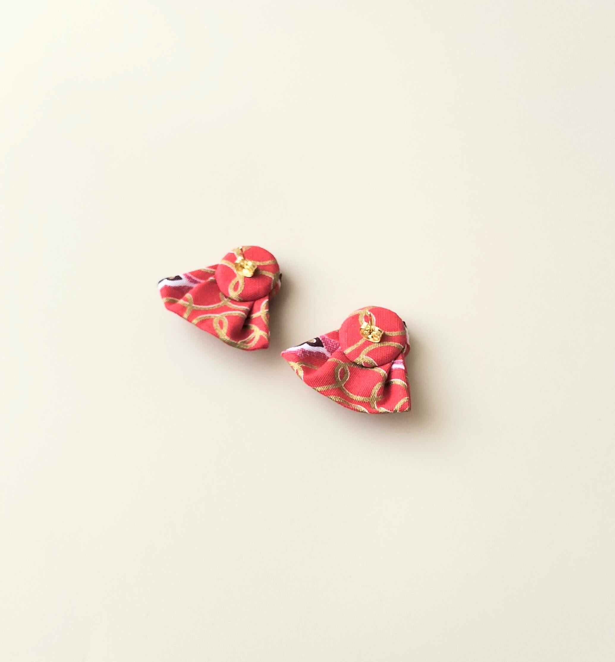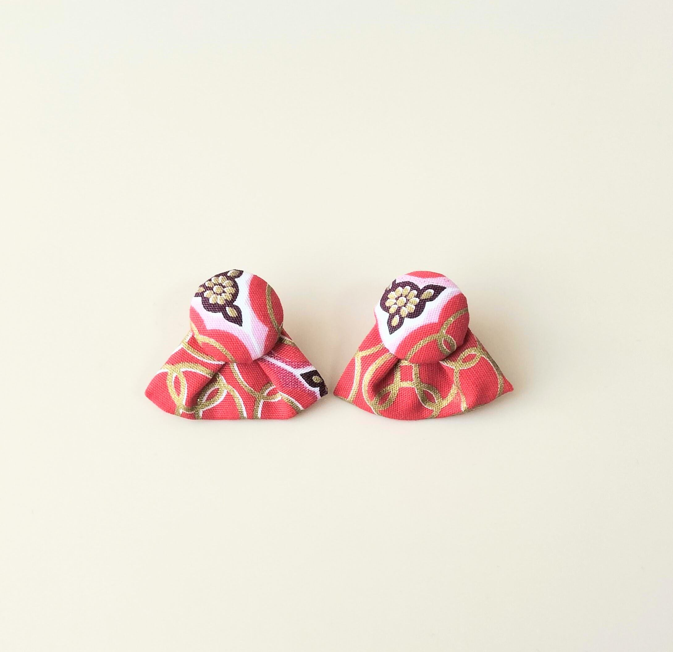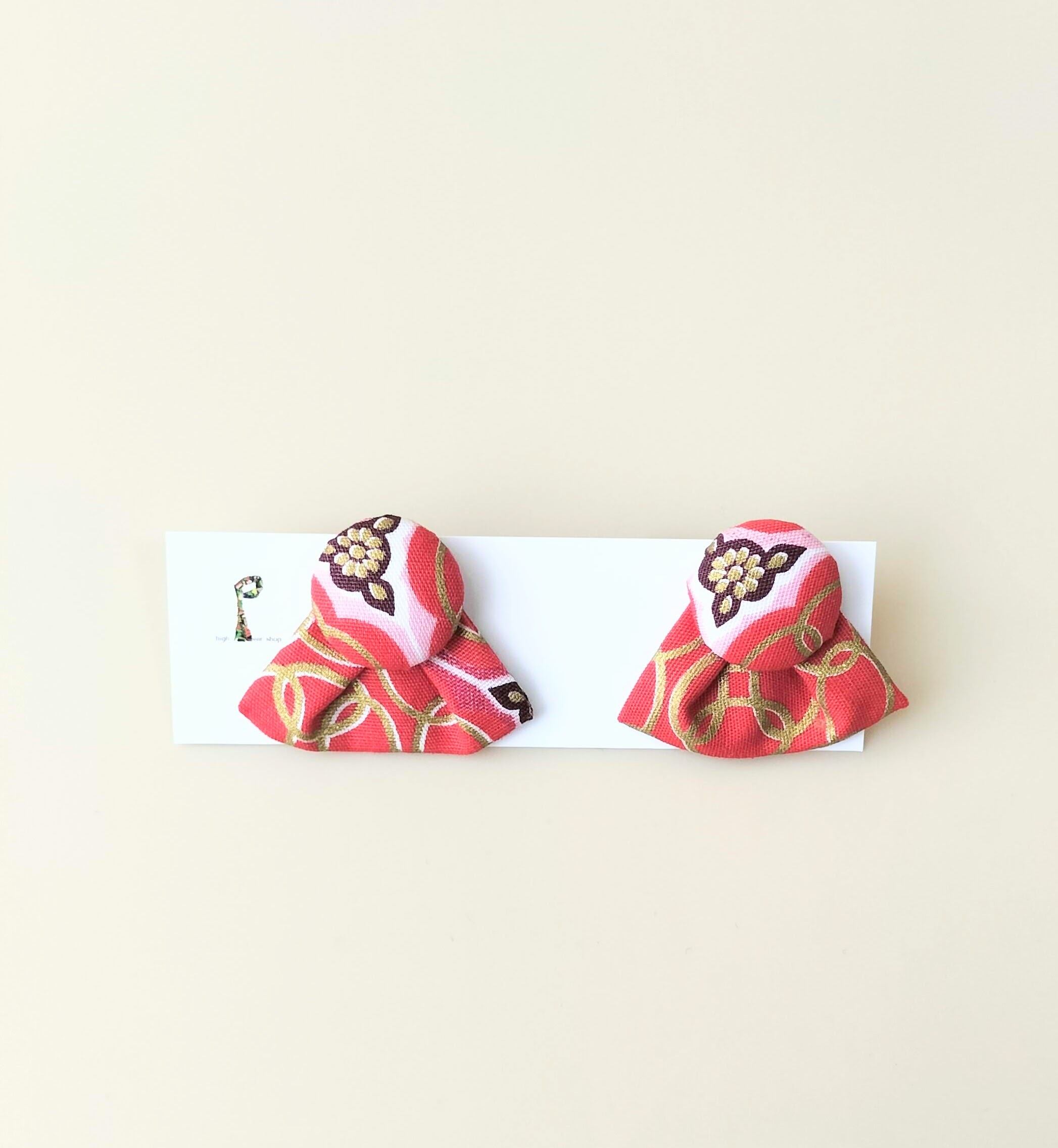 赤ベースの生地にゴールドリングの柄が大人っぽく、ピンク生地が可愛らしさを演出してくれます。