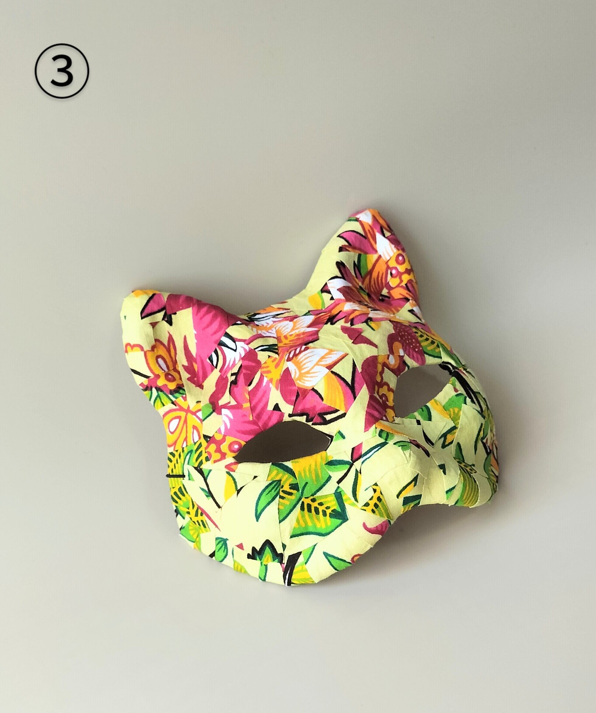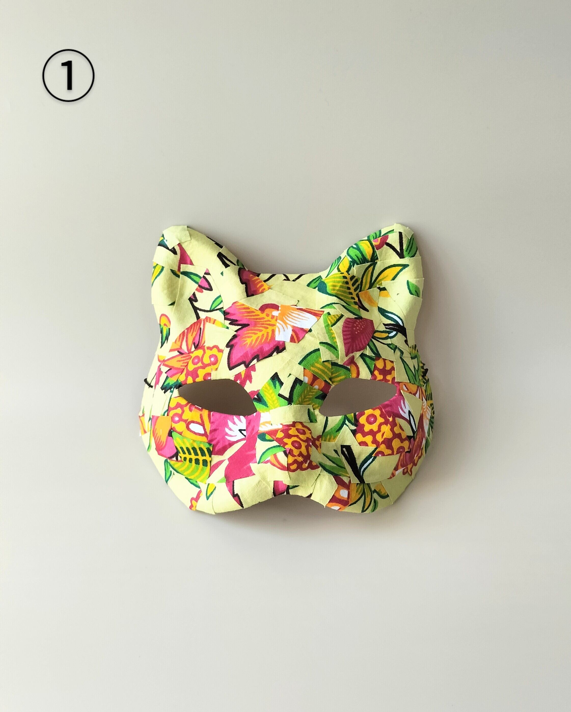 アフリカ布で作った猫のマスク。
