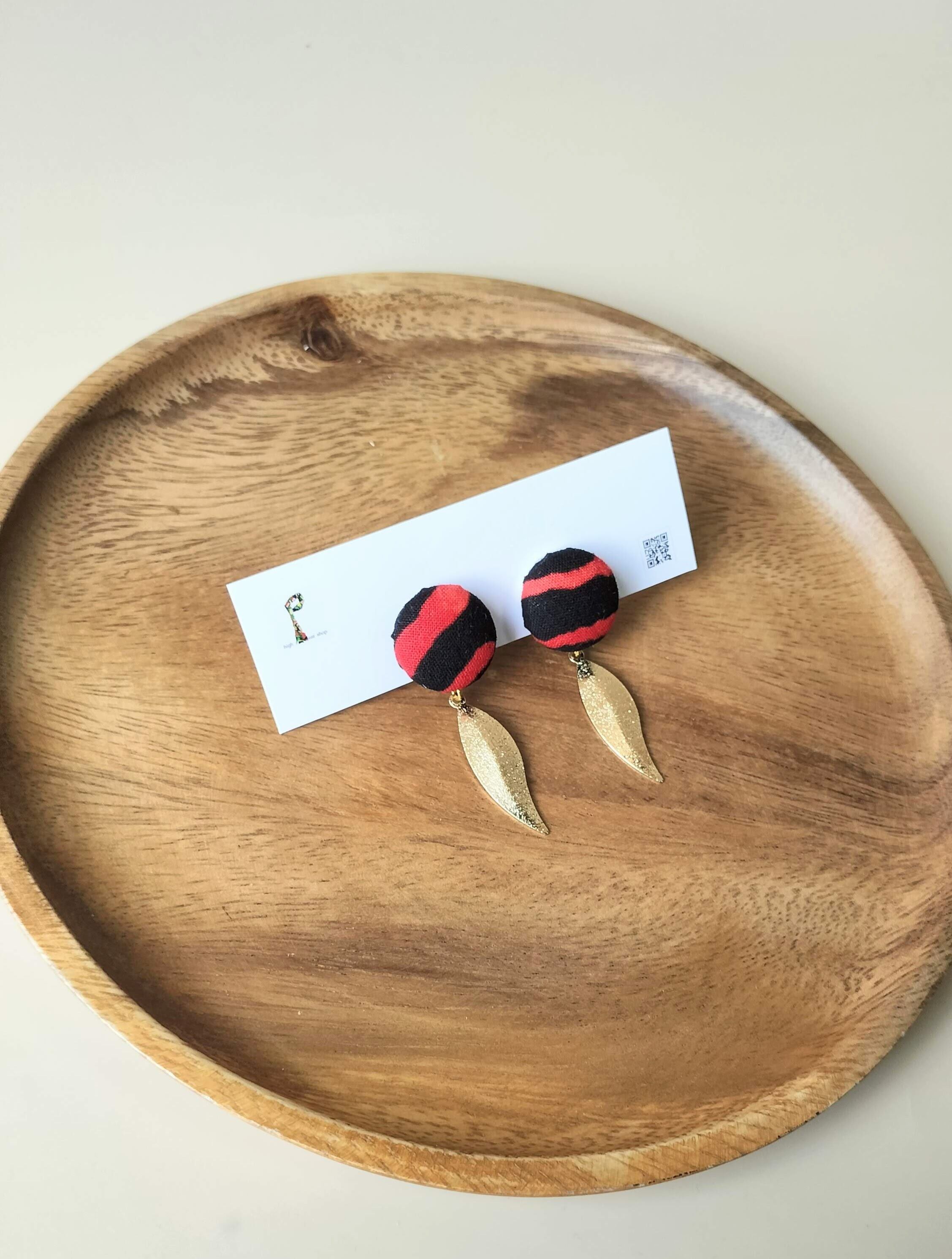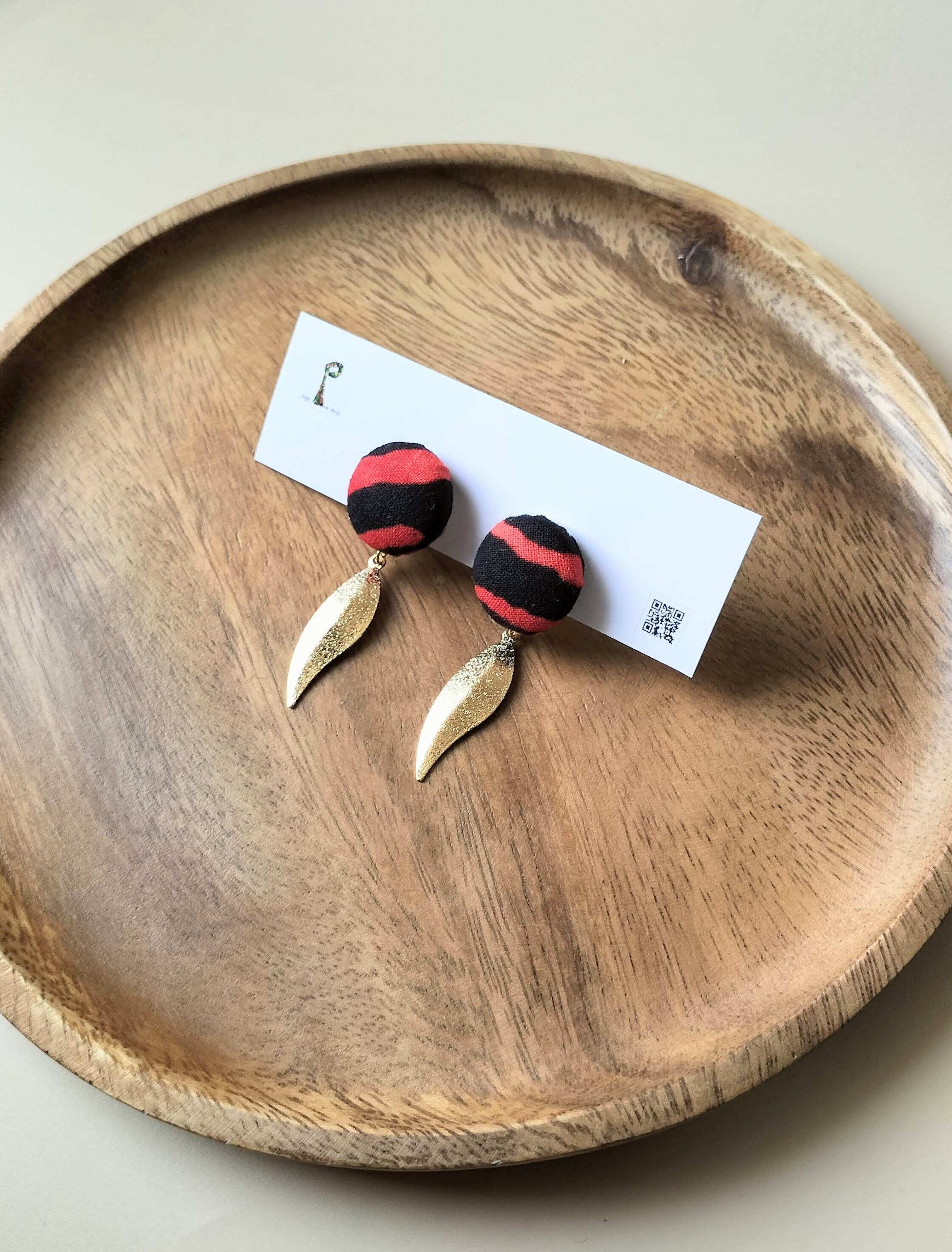 アフリカ布 イヤリング red leaf