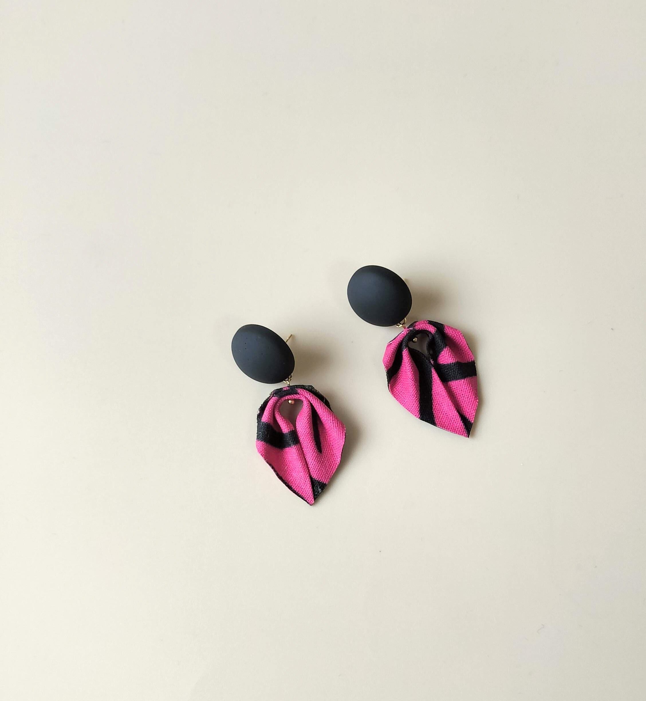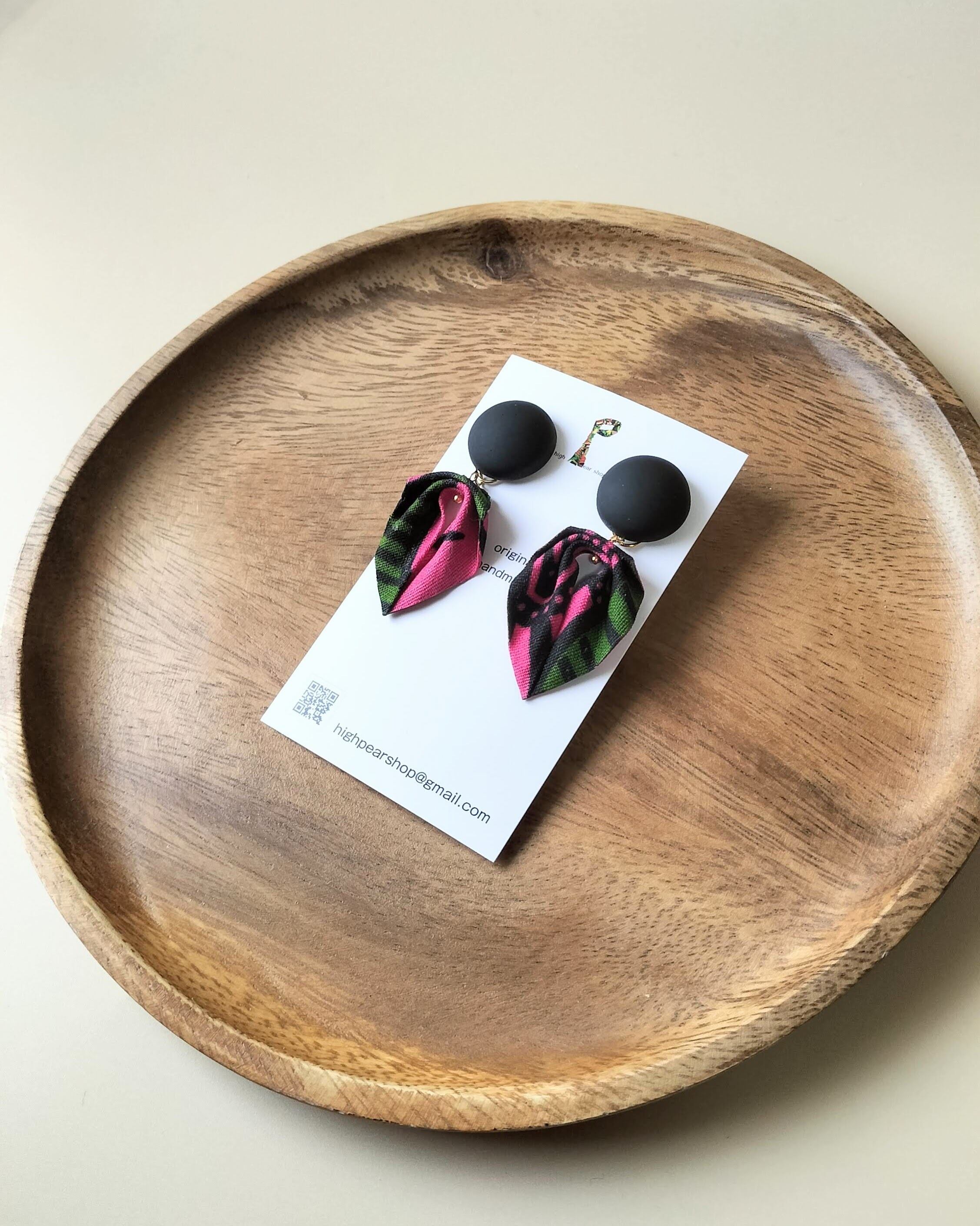 アフリカ布 ピアスorイヤリング green×vivid pink